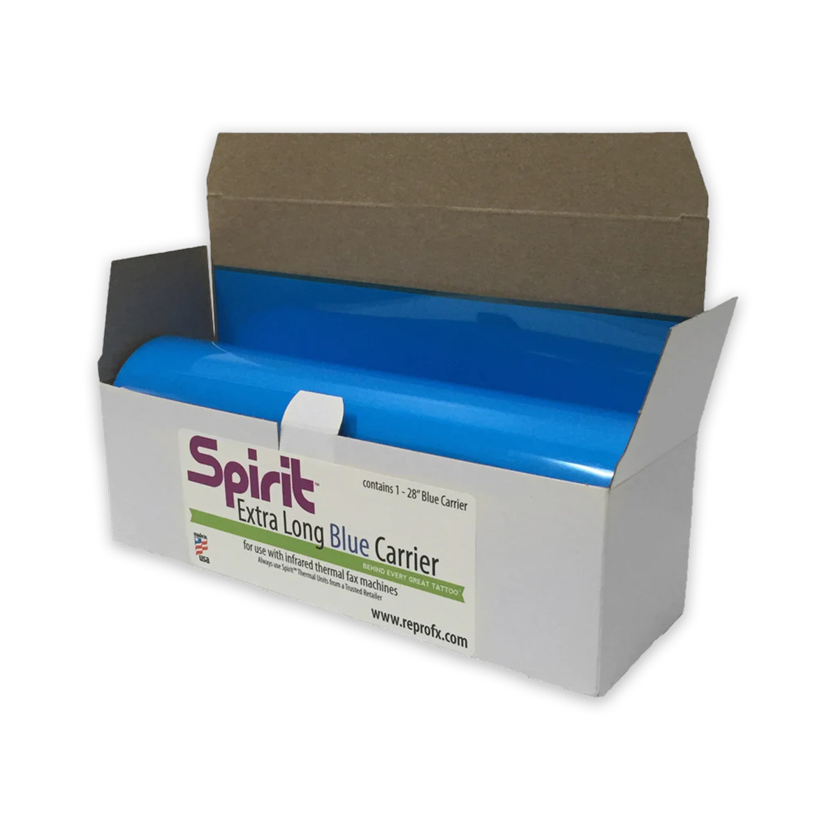 Our Spirit® Carriers have been developed to improve the quality of "burns" on thermal style transfer machines by evenly spreading thermal energy over the entire Spirit® Thermal Transfer Paper. Many old machines- like the 3M Secretary- develop hotspots as they get older; our Carriers have been proven to reduce over- and underexposure on these machines, allowing tattoo artists to get even and clear stencils every time.