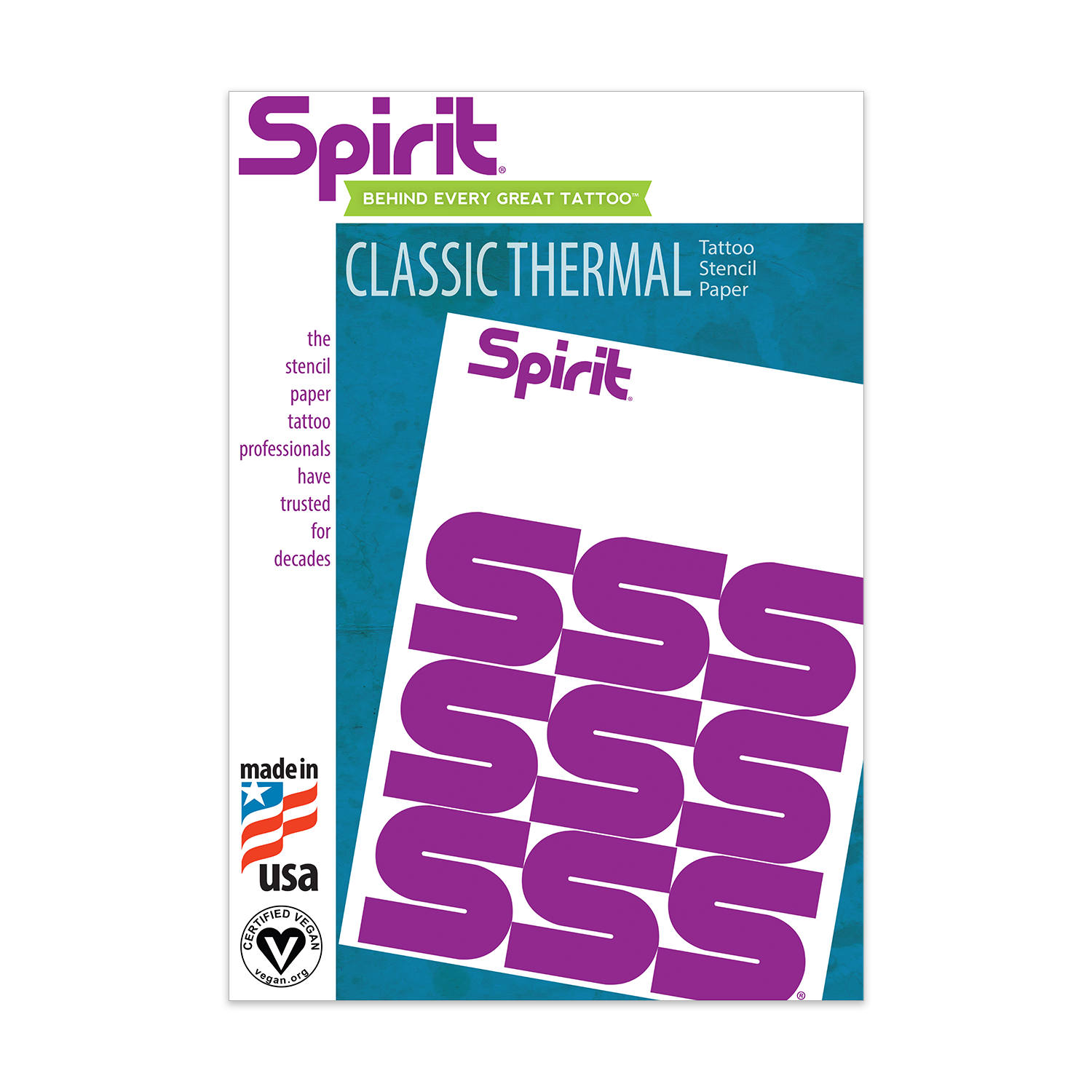 Spirit® Thermal Tattoo Transfer Papers are made for the professional artist. From our high visibility purple dyes to our ripstop stencil sheets, we use only the highest quality materials. Every time we manufacture, we test to ensure that the finished product meets our standard for excellence; if it doesn't, we don't sell it. And we manufacture everything here in the United States, just like we have since 1948.