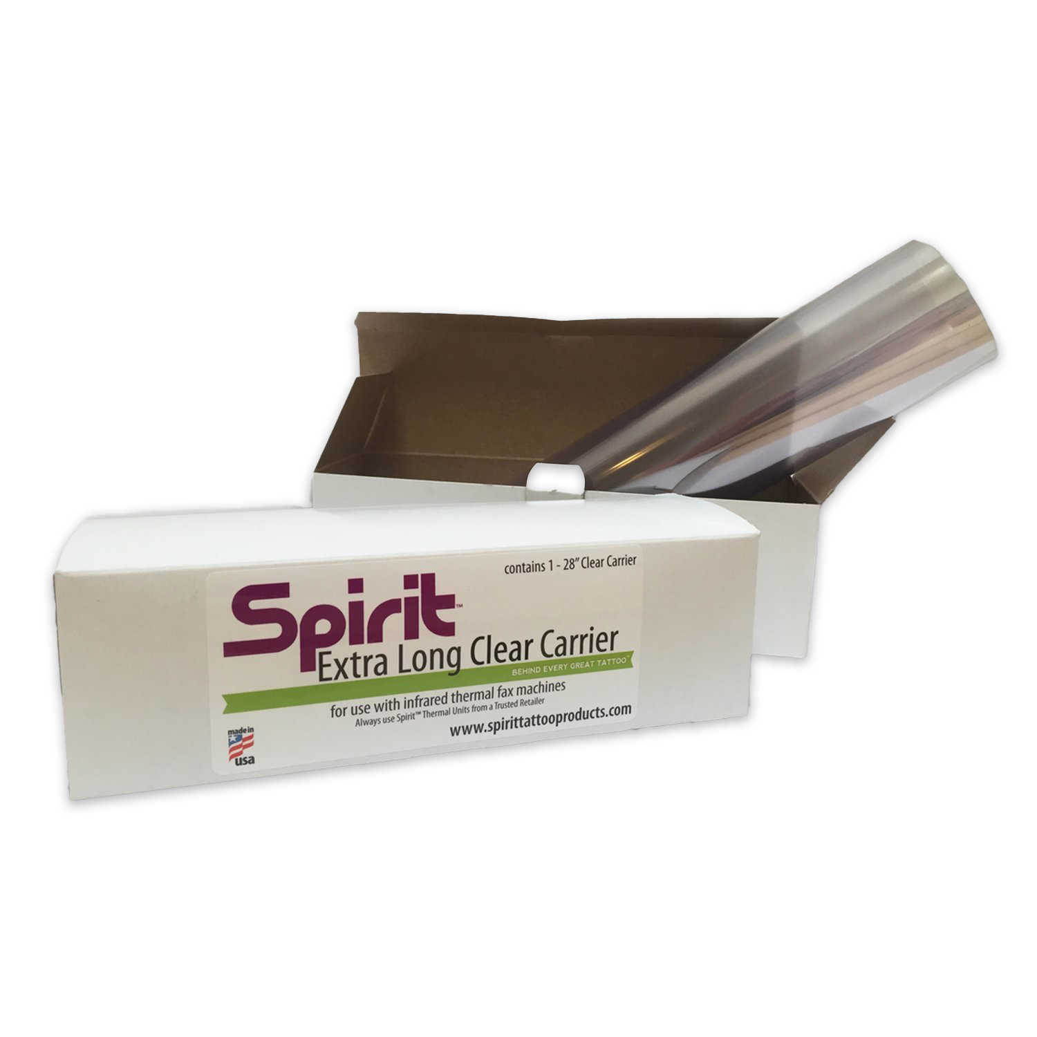 Our Spirit® Carriers have been developed to improve the quality of "burns" on thermal style transfer machines by evenly spreading thermal energy over the entire Spirit® Thermal Transfer Paper. Many old machines- like the 3M Secretary- develop hotspots as they get older; our Carriers have been proven to reduce over- and underexposure on these machines, allowing tattoo artists to get even and clear stencils every time.